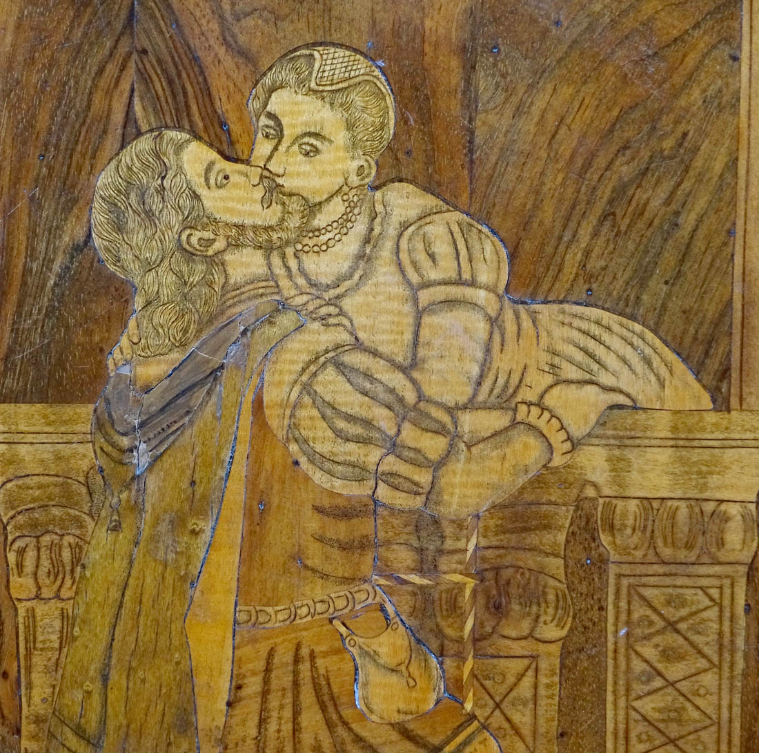 Konstrukcja bukowo-orzechowa, okleiny orzechowe, intarsje z różnych gatunków drewna, Włochy, II poł. XIX w.