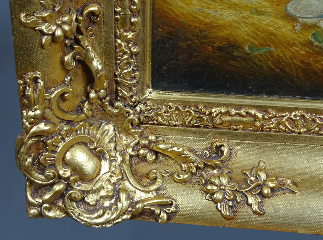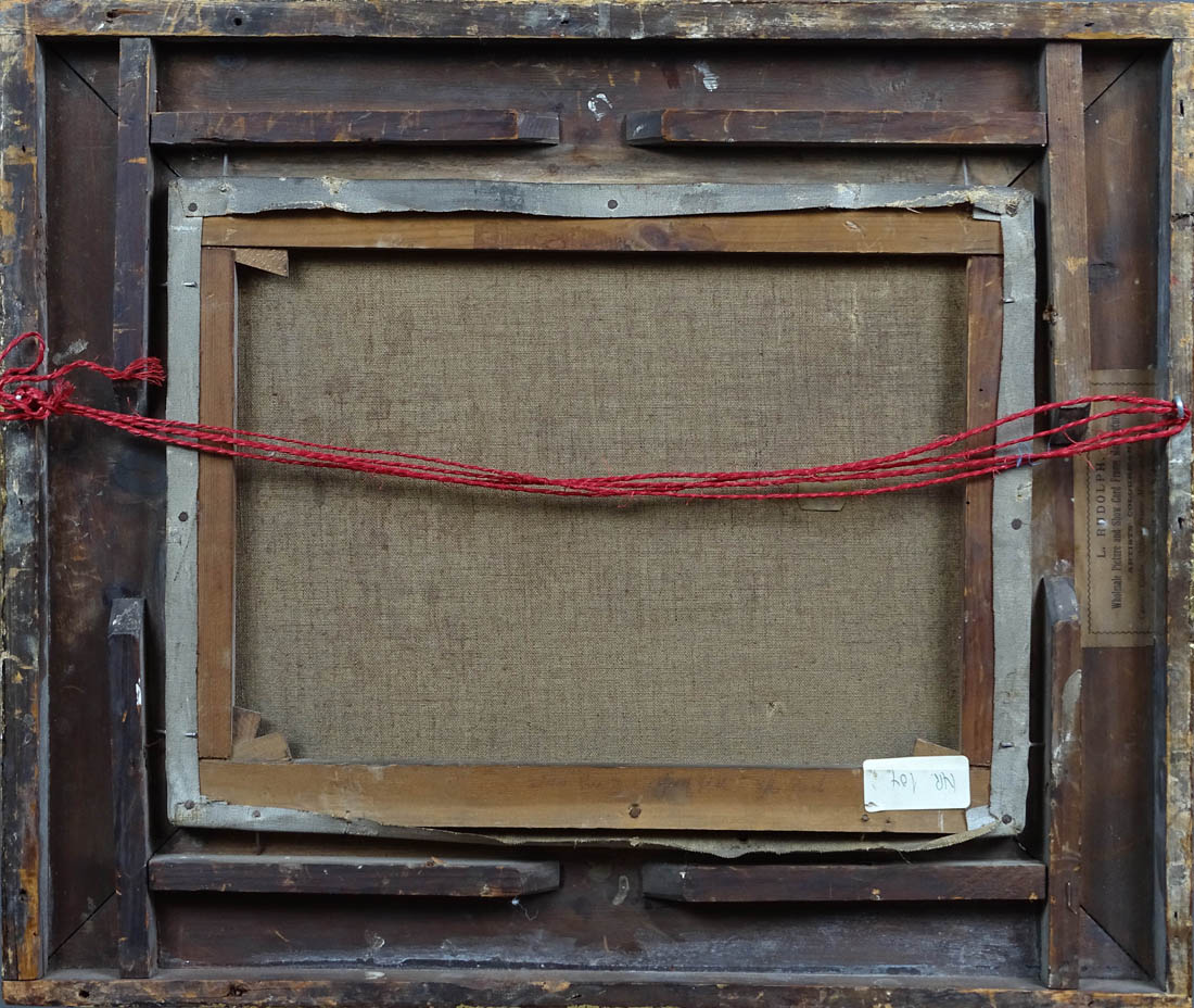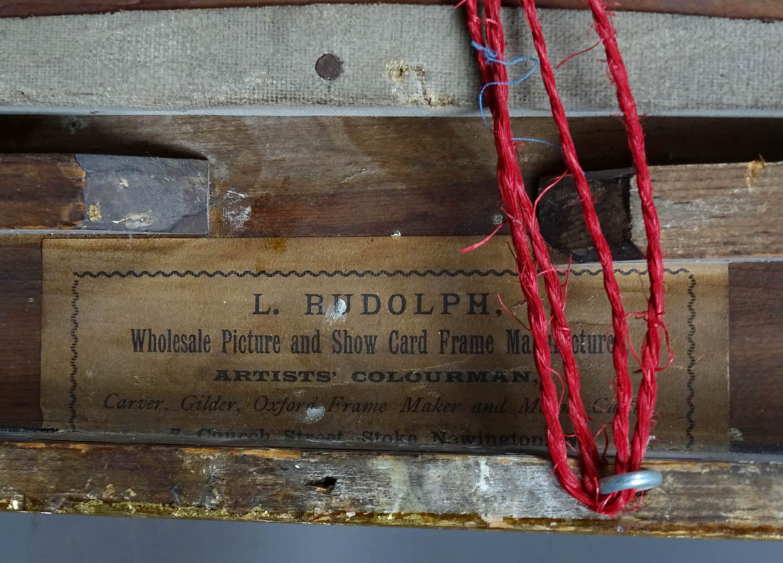 W bogato zdobionej ramie z etykietą londyńskiego producenta ram: L. Rudolph, Church Street, Stoke Newington, Londyn.